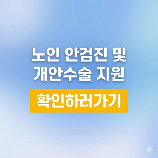 경제적 부담 때문에 망설였던 백내장, 녹내장 수술을 본인부담금 0원으로 해결할 수 있는 방법이 있습니다. 지금바로 아래 내용을 확인하고 혜택을 챙겨보시기 바랍니다.